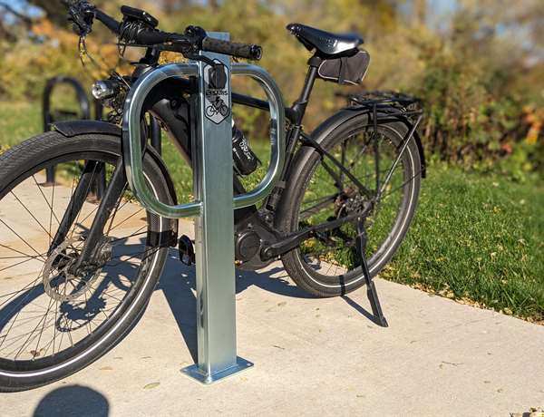 The Power Post brings the power directly to the bike. A Post and Ring Style rack with built in power outlets allows charging for up to two eBikes simultaneously allowing you to securely lock the bikes and keep your battery full and ready for riding.