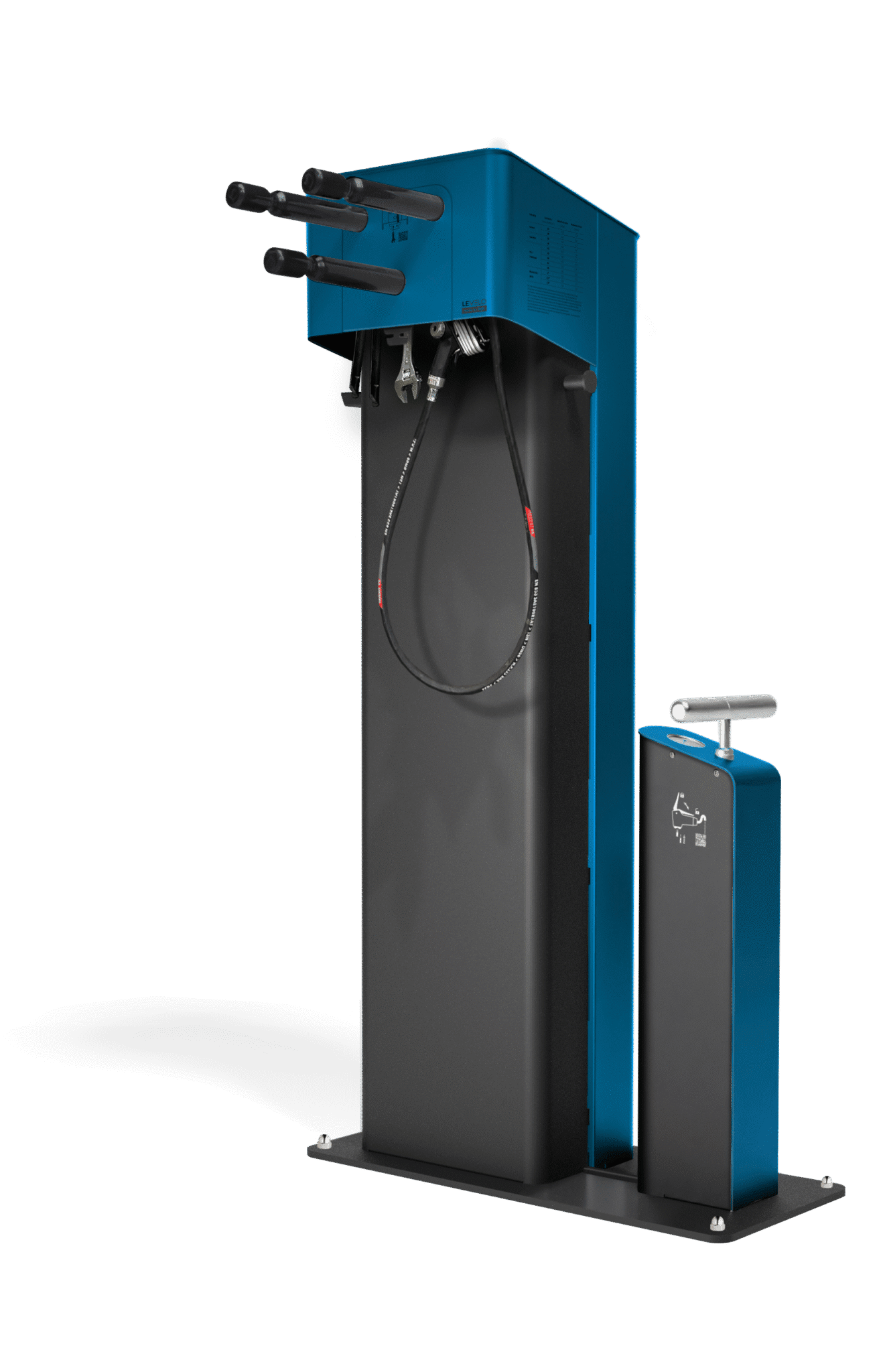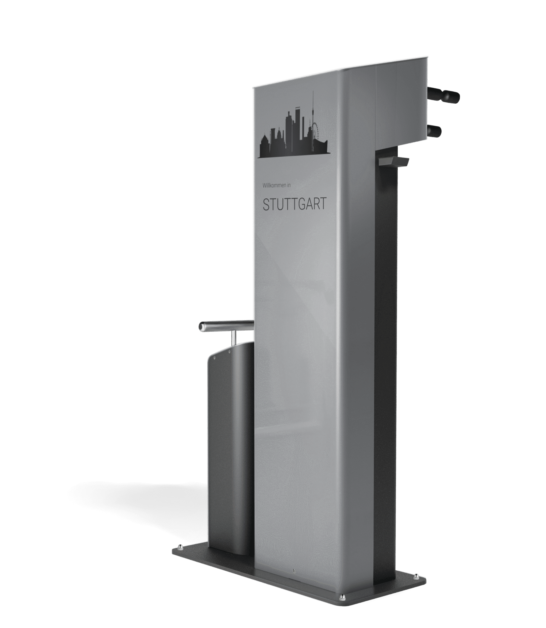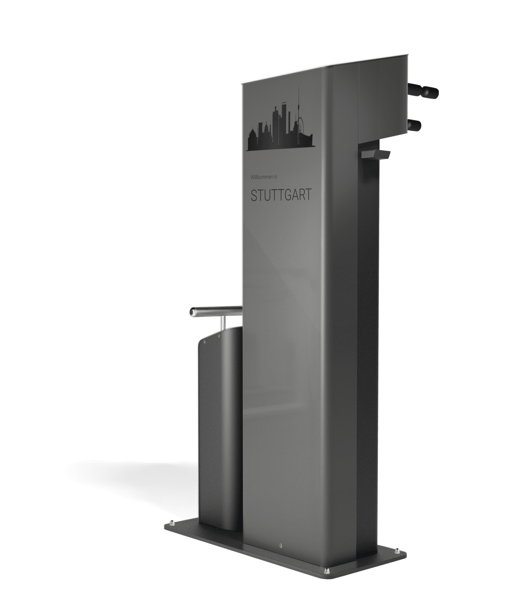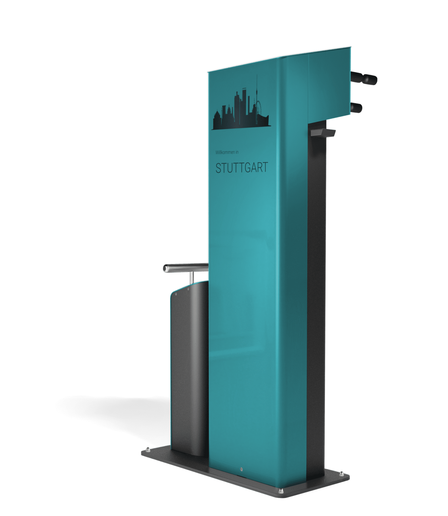 The bicycle repair station is finished with an outdoor powder coating (according to corrosion protection classes according to DIN EN, category C4. This category corresponds to an industrial atmosphere and coastal atmosphere with moderate salt exposure.