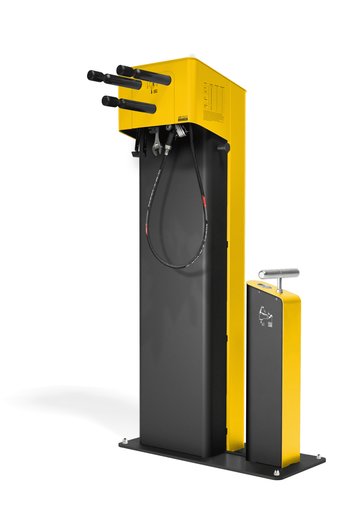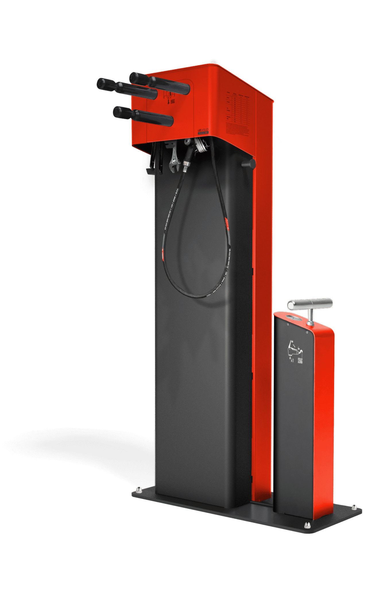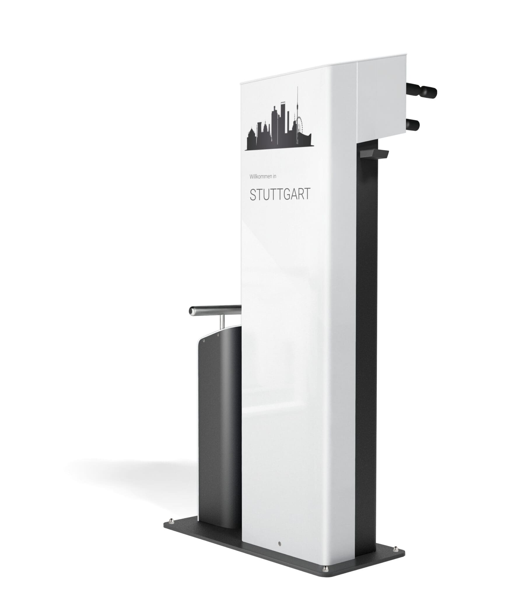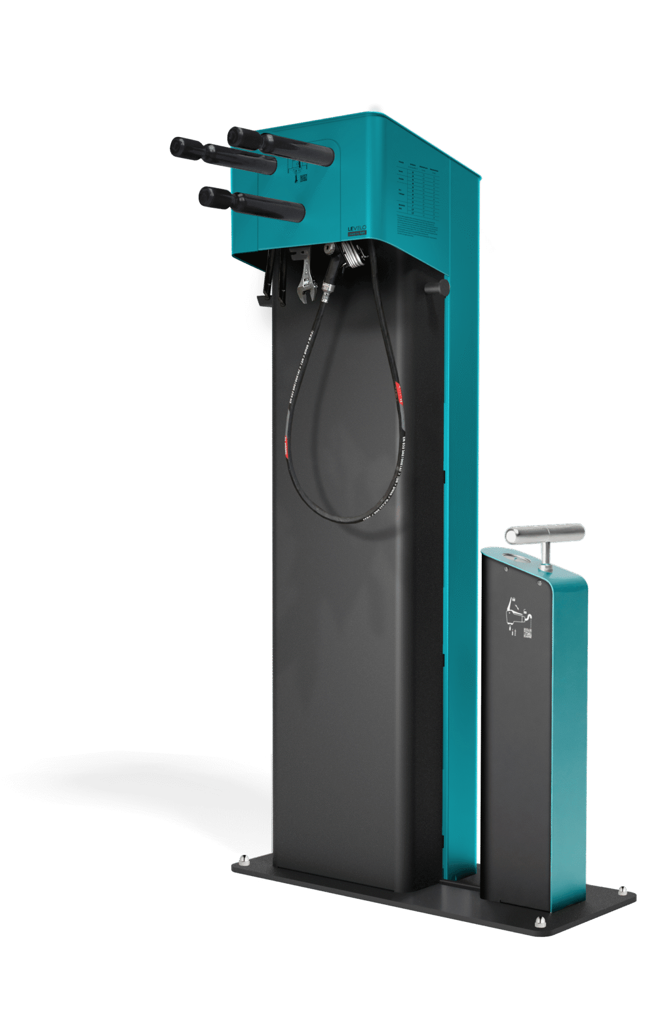 The bicycle repair station is finished with an outdoor powder coating (according to corrosion protection classes according to DIN EN, category C4. This category corresponds to an industrial atmosphere and coastal atmosphere with moderate salt exposure.