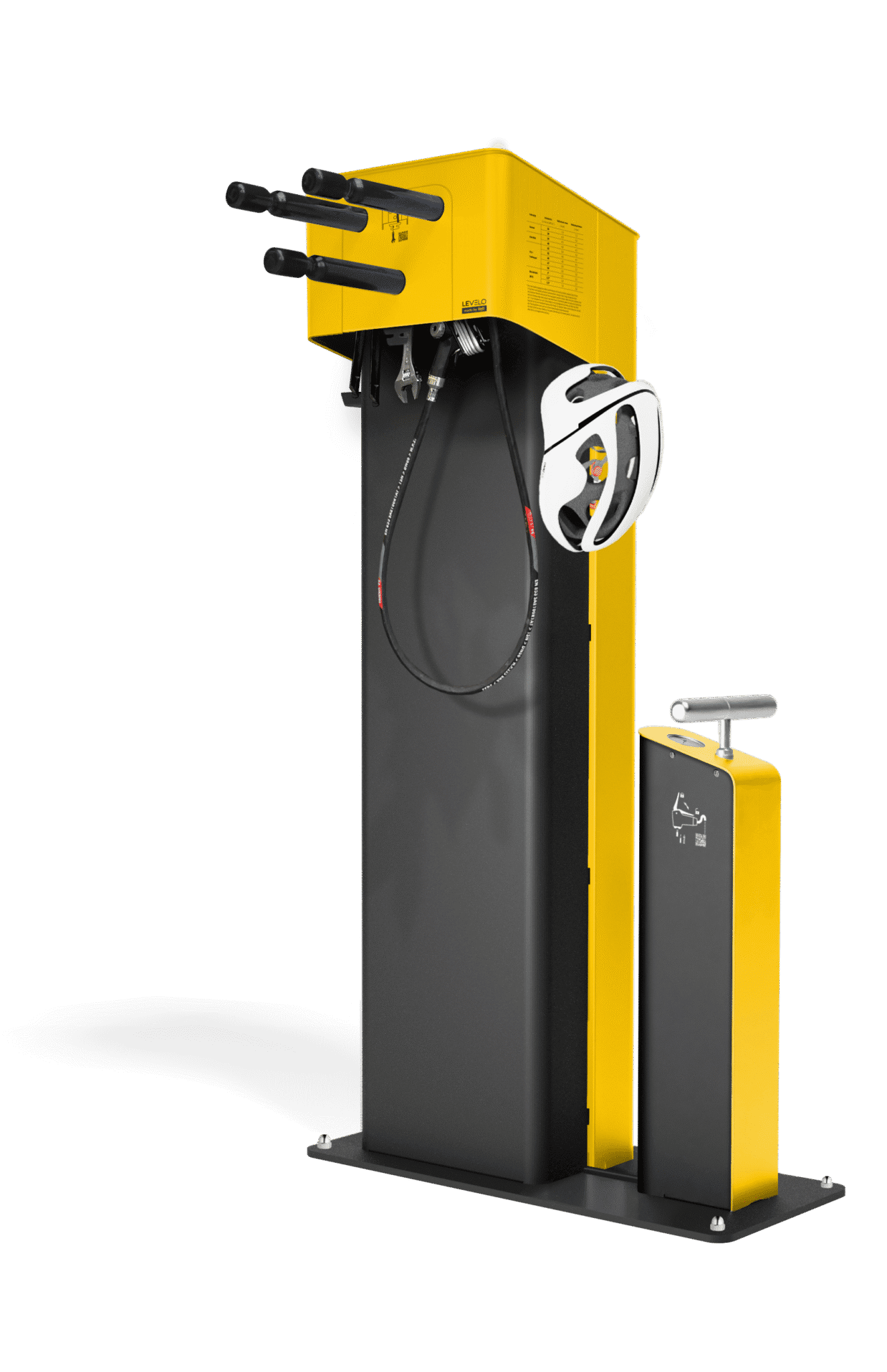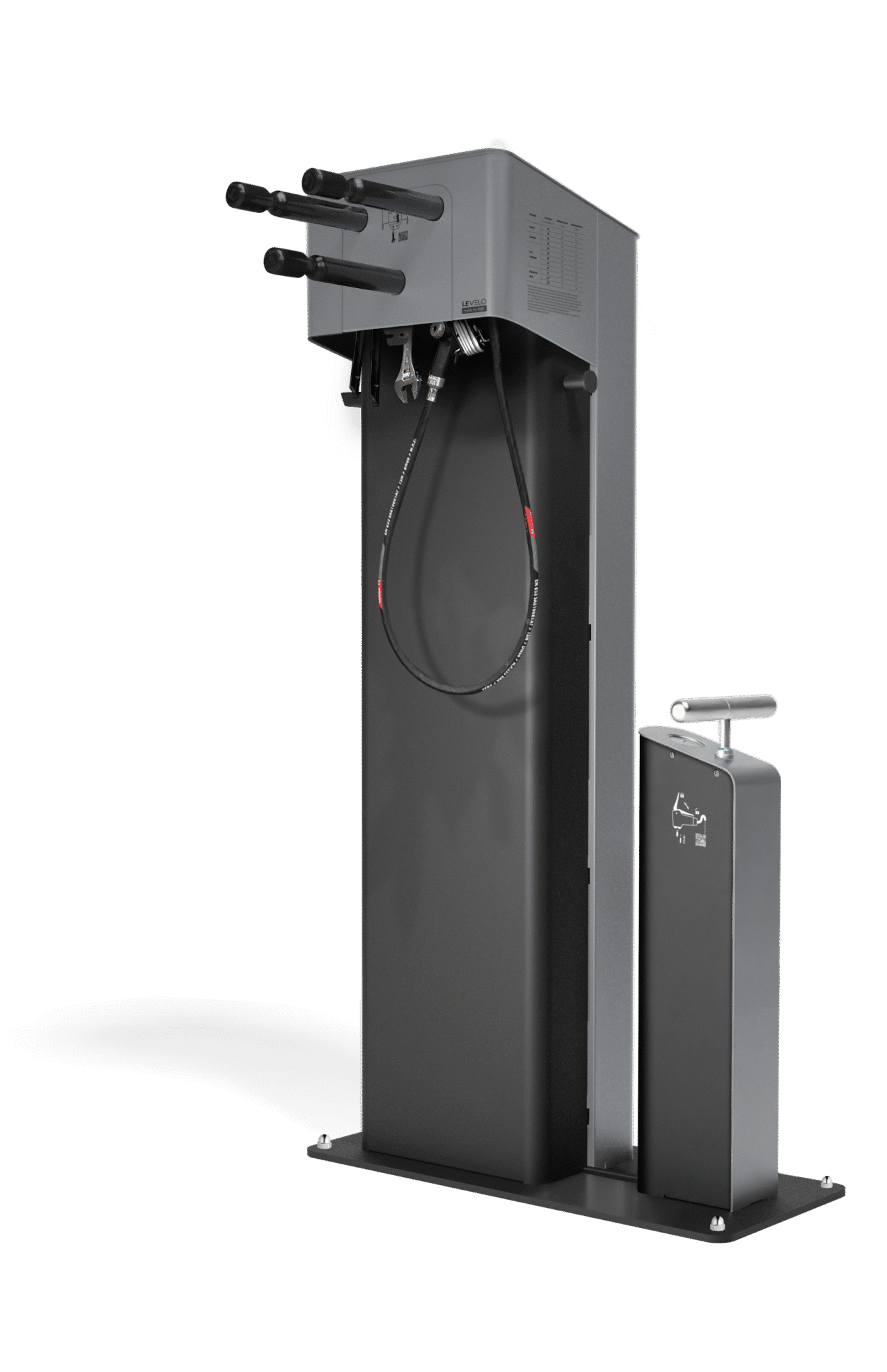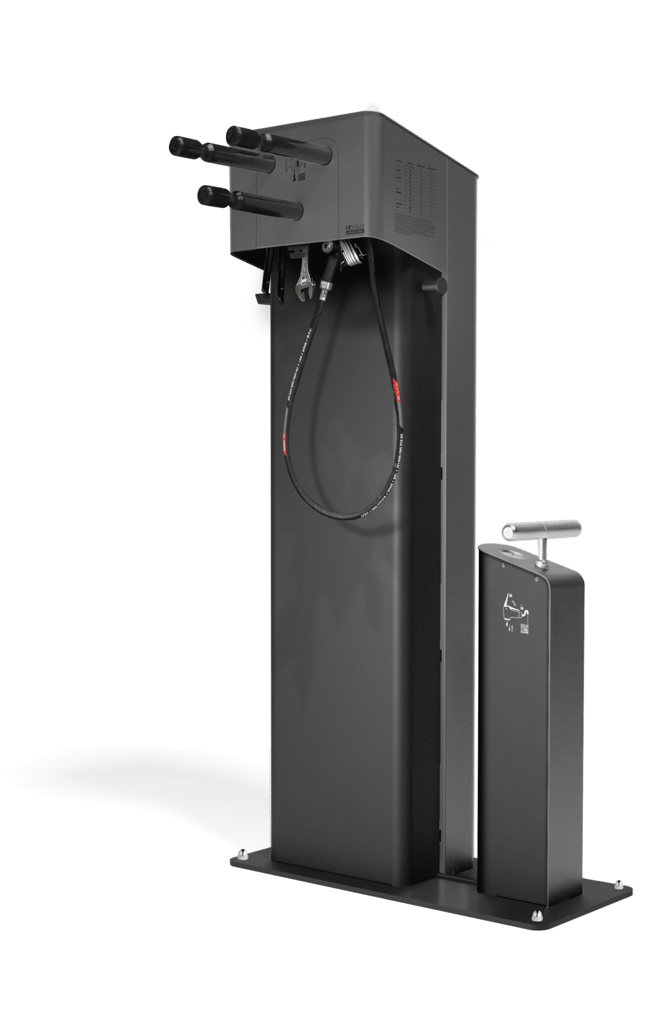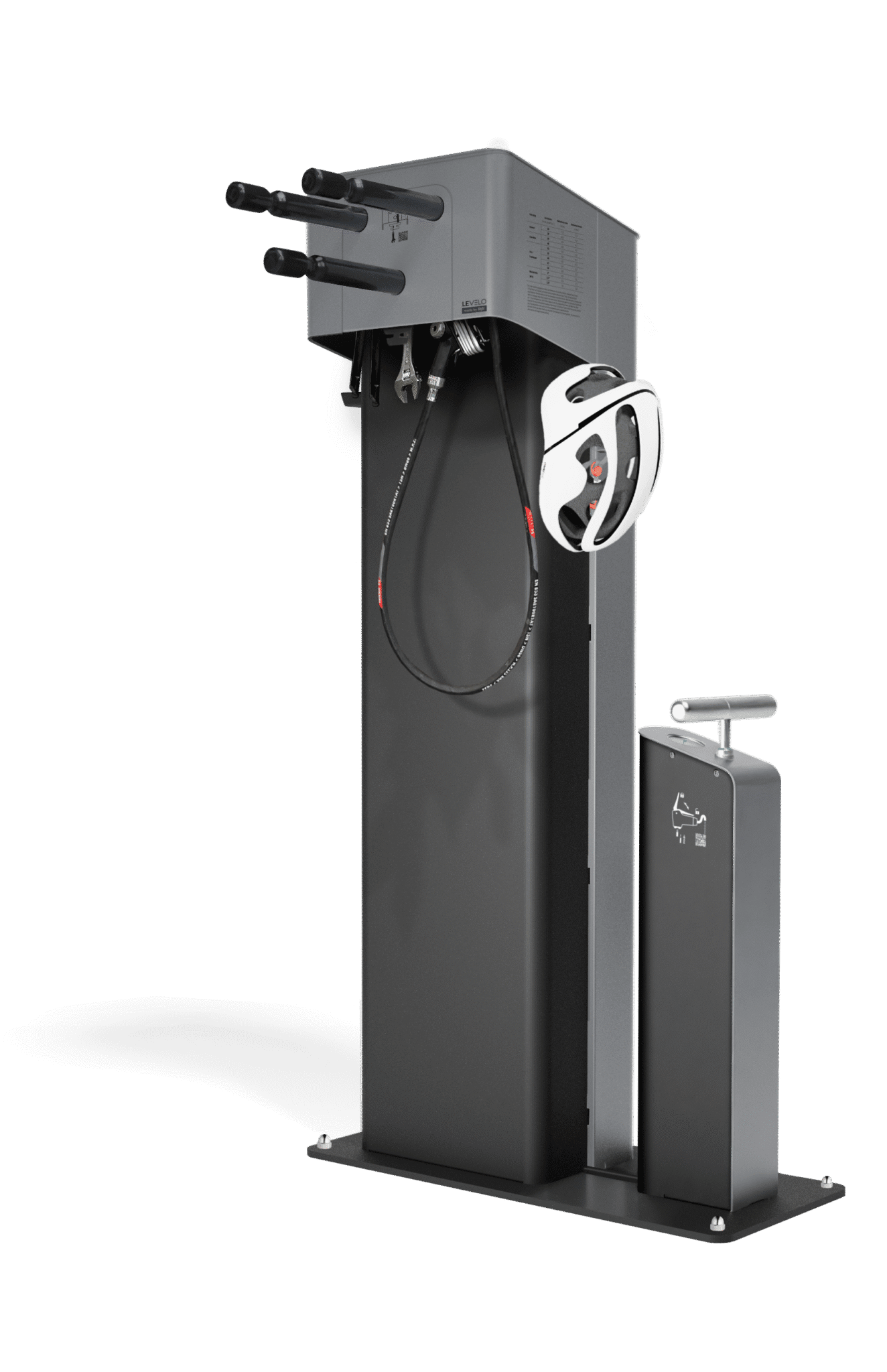 The bicycle repair station is finished with an outdoor powder coating (according to corrosion protection classes according to DIN EN, category C4. This category corresponds to an industrial atmosphere and coastal atmosphere with moderate salt exposure.