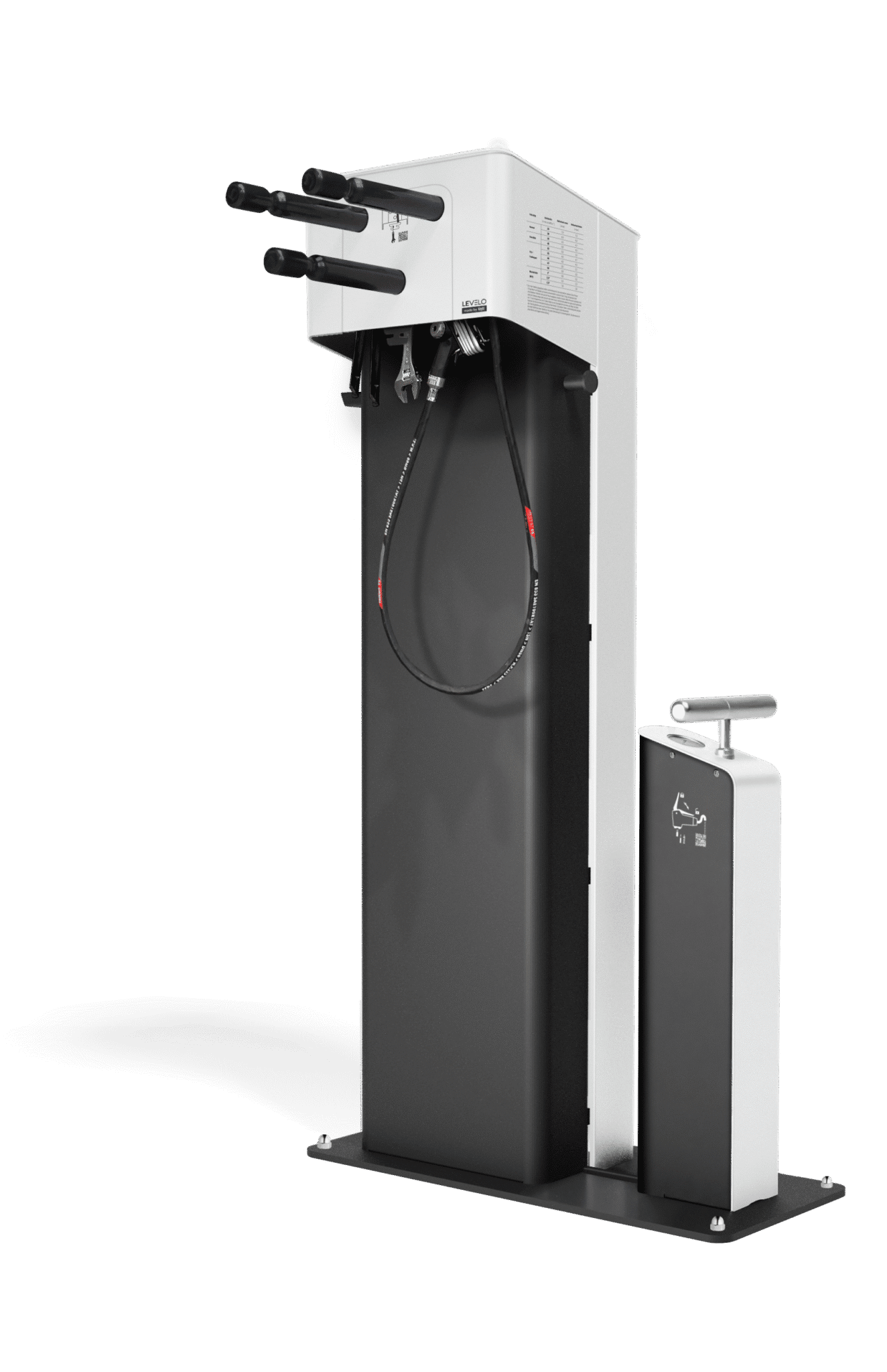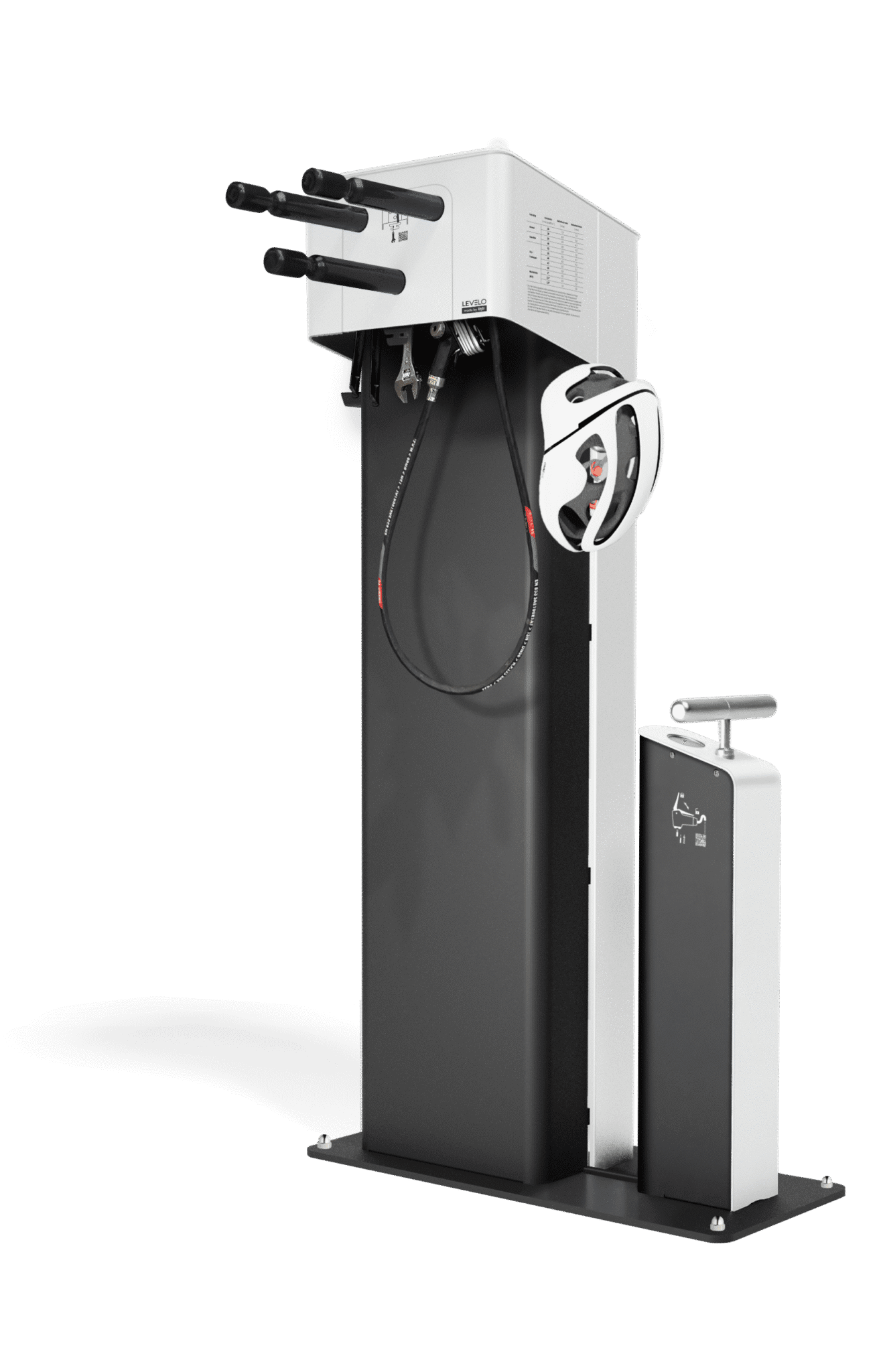 LEVELO station: 690 x 310 mm, base plate made of 8 mm steel with four holes for easy installation on the foundation using 4 x V2A heavy-duty anchors with hexagon nuts